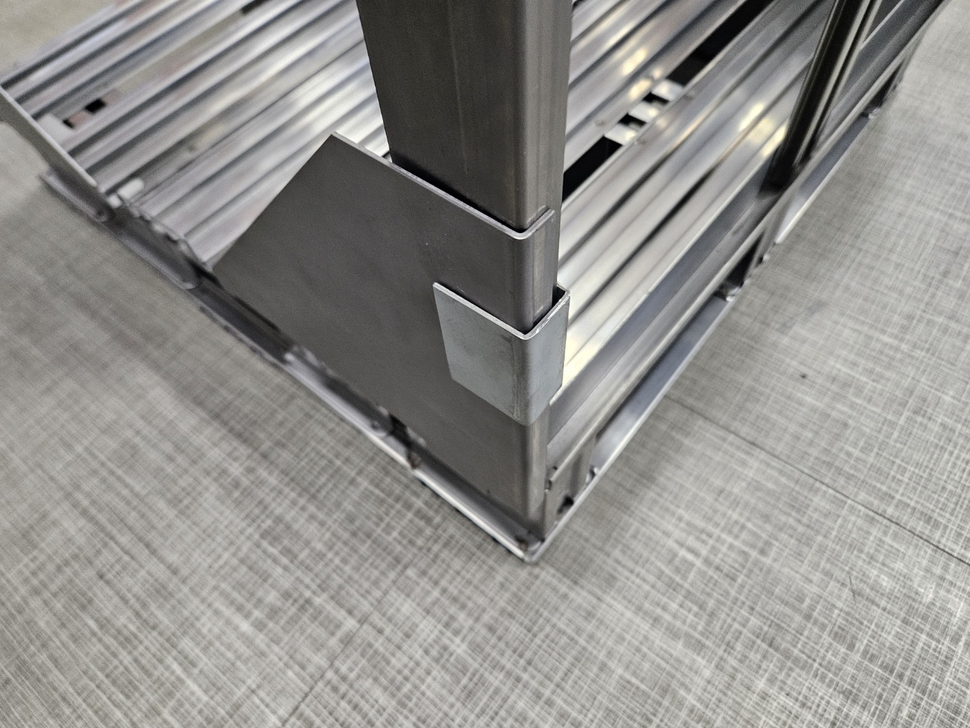 2. 파렛트 모서리에 삼각브라켓을 끼운다.