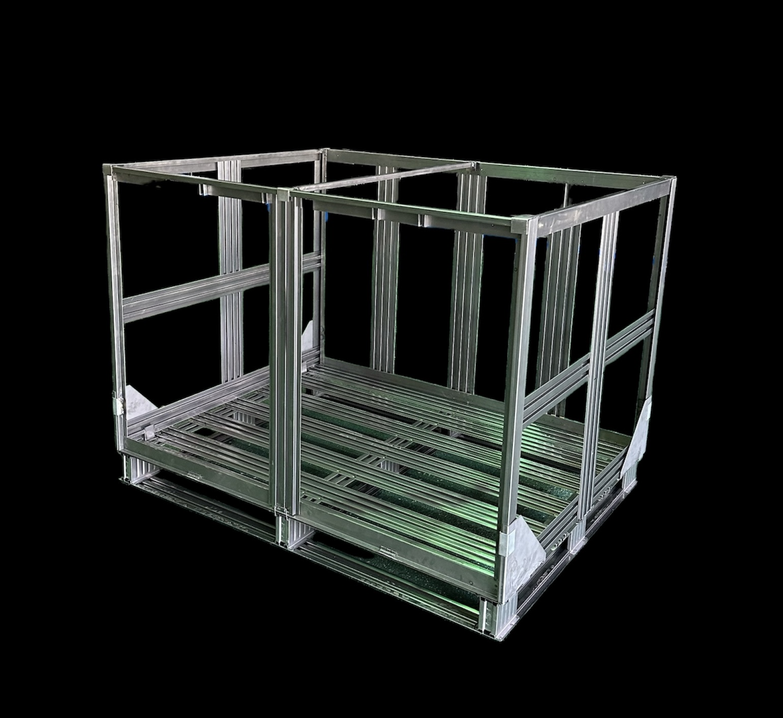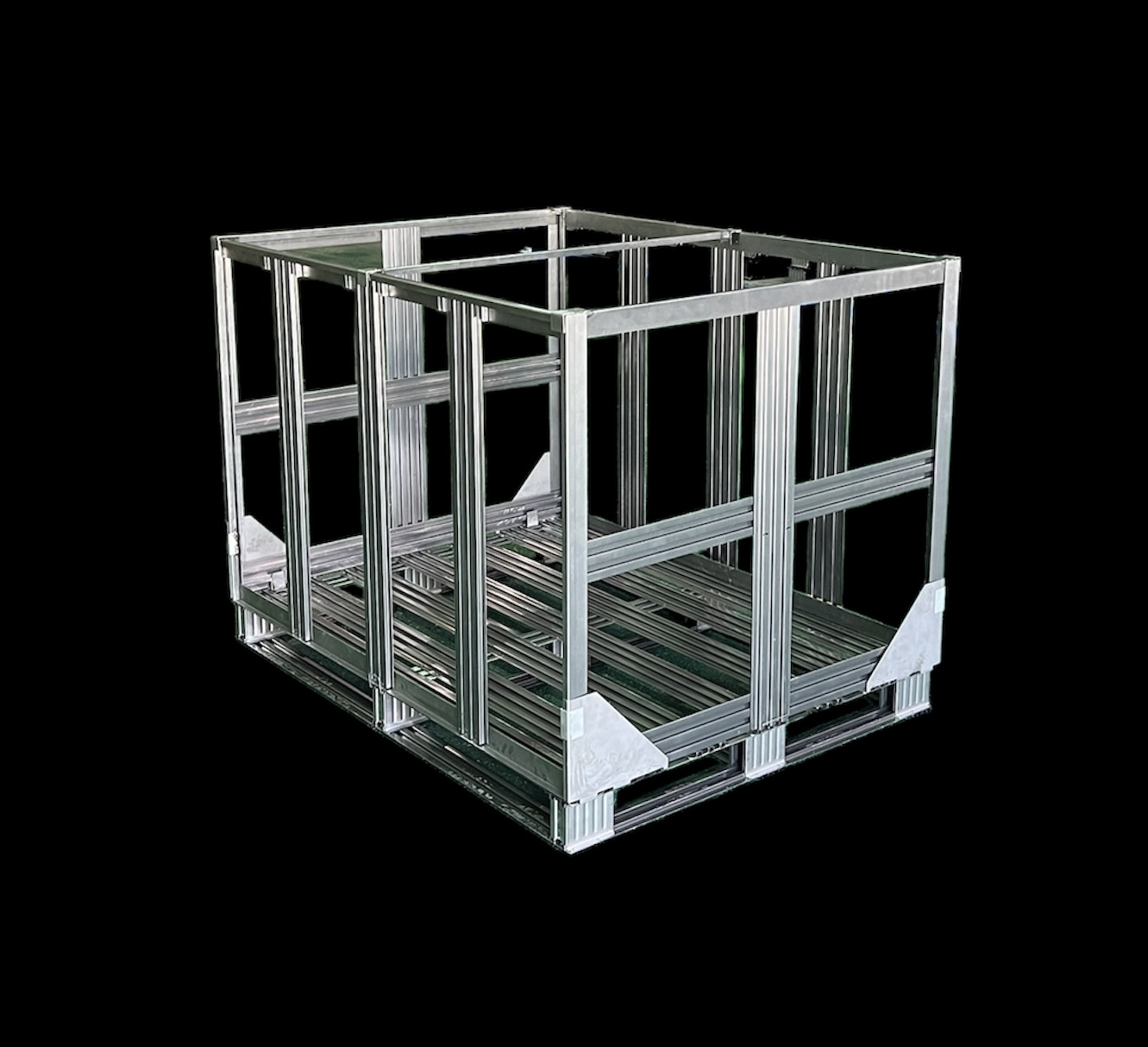 1. 파렛트를 바닥에 놓고, 모서리에 삼각브라켓을 끼운다.